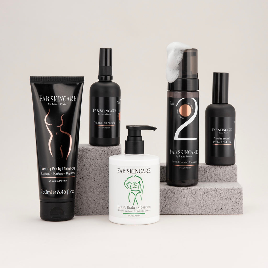 Meet the FAB Skincare Starter Bundle! Exclusive for Black Friday, available until 30th November (whilst stock lasts!). The perfect introductory set designed for those ready to begin their FAB Skincare journey. Our starter bundle includes five of our most iconic products for glowing, radiant and healthy skin. Includes our NEW Body Exfoliator, exclusively available to bundles only!